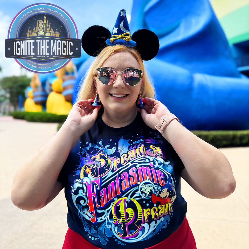 First making his appearance in 1940's Fantasia, Sorcerer Mickey has become an icon and his hat even became a symbol in Hollywood Studios from 2001 to 2015, and soon will be returning. Sorcerer Mickey also makes appearances in Fantasmic on both US coasts as well! We wanted to create an earring that was beautiful and elegant, and utilize unique printing options to elevate the beauty.