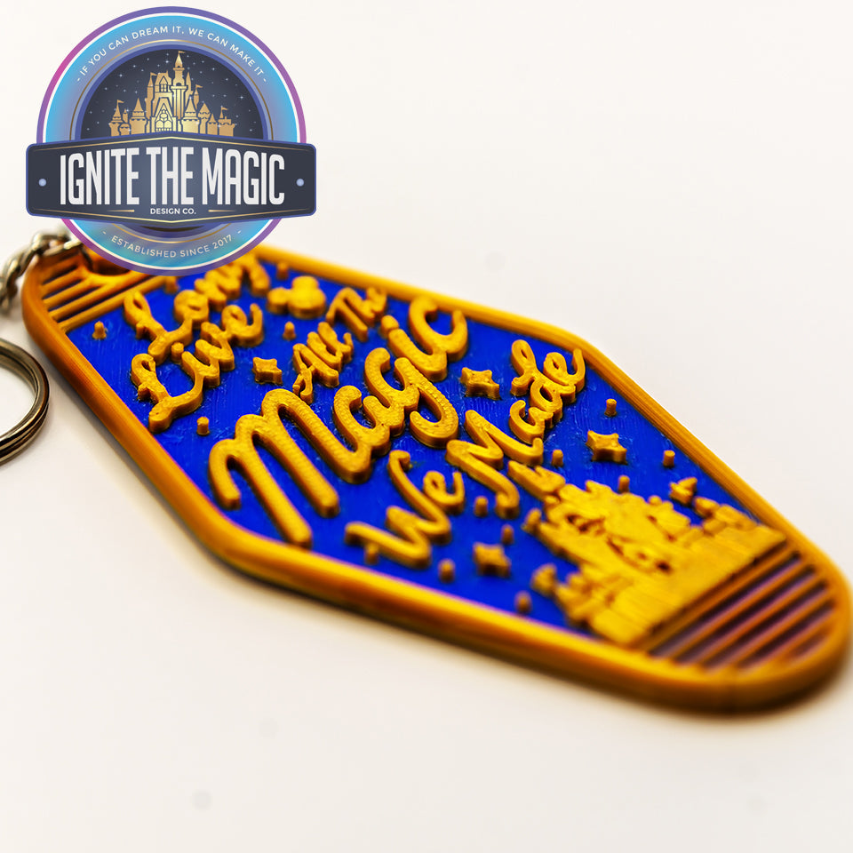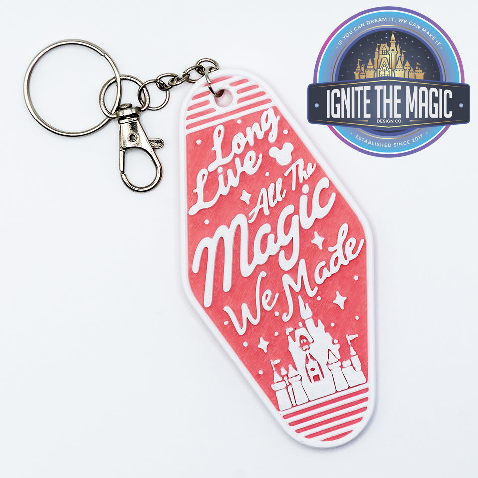 Celebrate your favorite lyric and your love for all things magical with this 3D printed vintage-style keychain, featuring Taylor Swift’s iconic “Long live all the magic we made” line and a detailed design of Cinderella’s Castle.